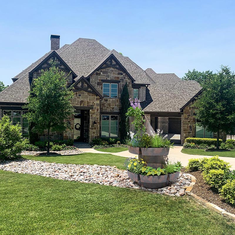Bei unserer vertikalen Garten-Skulptur “The Flame” handelt es sich im Prinzip um folgende Konstruktion: An einem, vertikal, aufgestellten, gewalzten tragendem Stahlblech, sind waagerecht Pflanzschalen aus Blech angeschweißt. Das tragende Stahlblech hat eine Stärke von 10 mm. Die Pflanzschalen werden aus 3 mm Stahlblech geschweißt. Die Pflanzschalen haben unterschiedliche Formen und Größen. Befestigt wird die Gartenskulptur auf einem bauseits zu errichtenden Fundament.