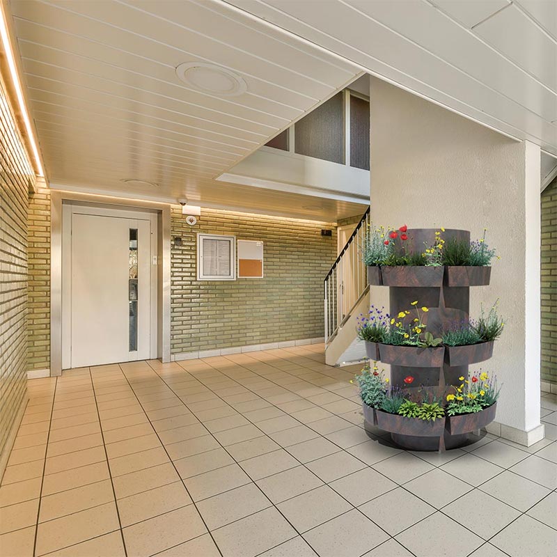 Dieses Produkt ist mehr als ein vertikaler Garten: Es kann Design-/Schmuckelement sein und als Blickfang diesen. Es kann in die Gartenplanung als Stilelement mit einbezogen werden oder für sich stehen – sowohl im Innenbereich als auch in Außenanlagen.
