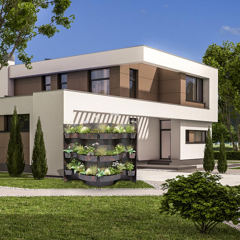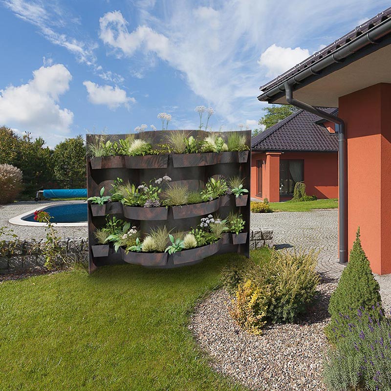Dieses Produkt ist mehr als ein vertikaler Garten: Es kann Design-/Schmuckelement sein und als Blickfang diesen. Es kann in die Gartenplanung als Stilelement mit einbezogen werden oder für sich stehen – sowohl im Innenbereich als auch in Außenanlagen.
